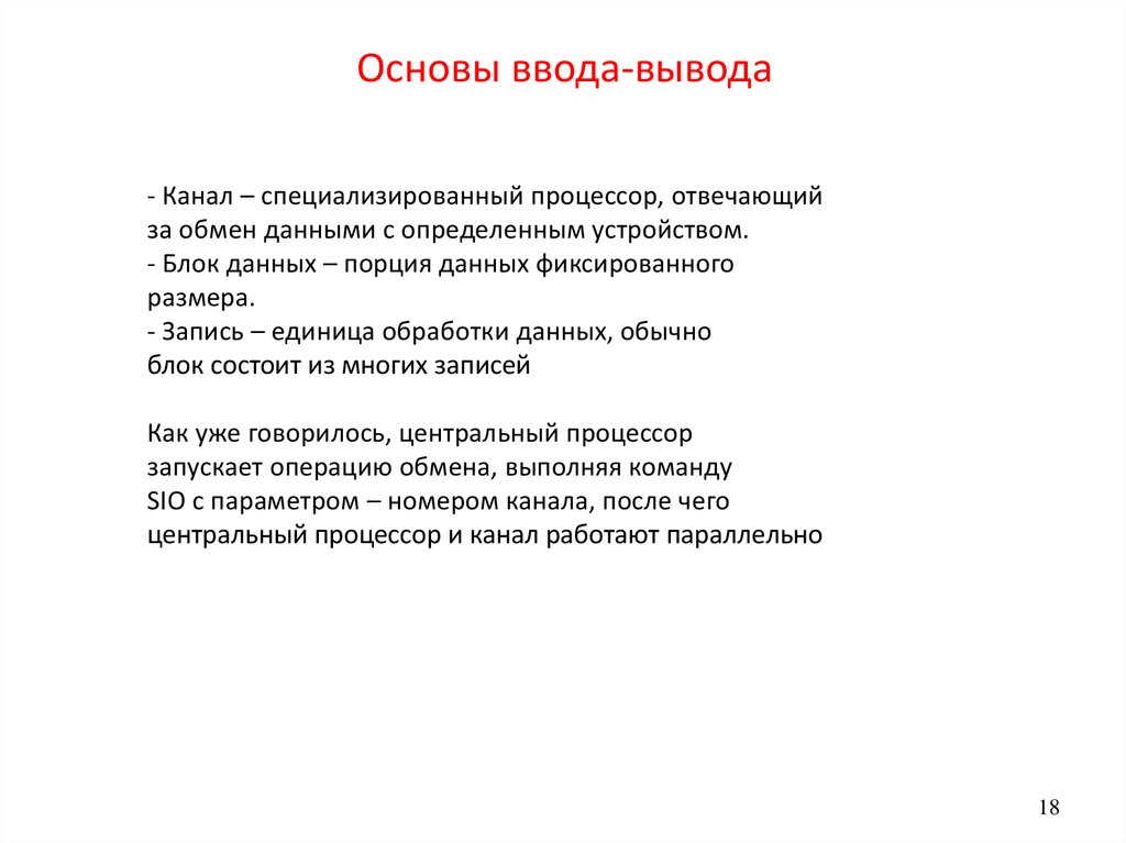Основы ввода-вывода- Канал – специализированный процессор, отвечающий