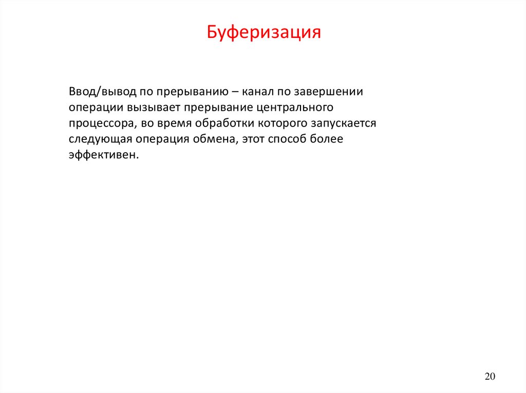 БуферизацияВвод/вывод по прерыванию – канал по завершении