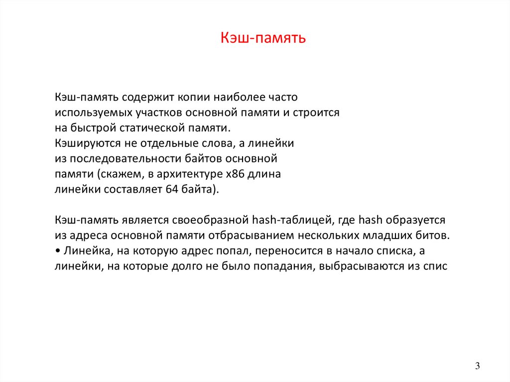 Кэш-памятьКэш-память содержит копии наиболее часто