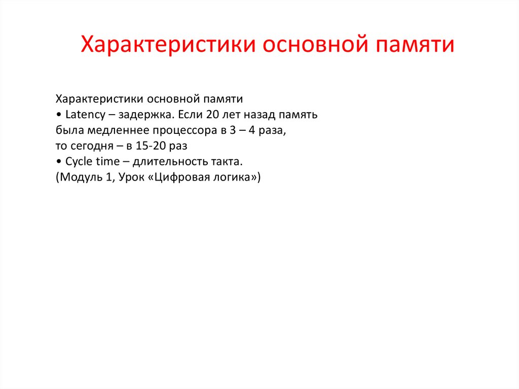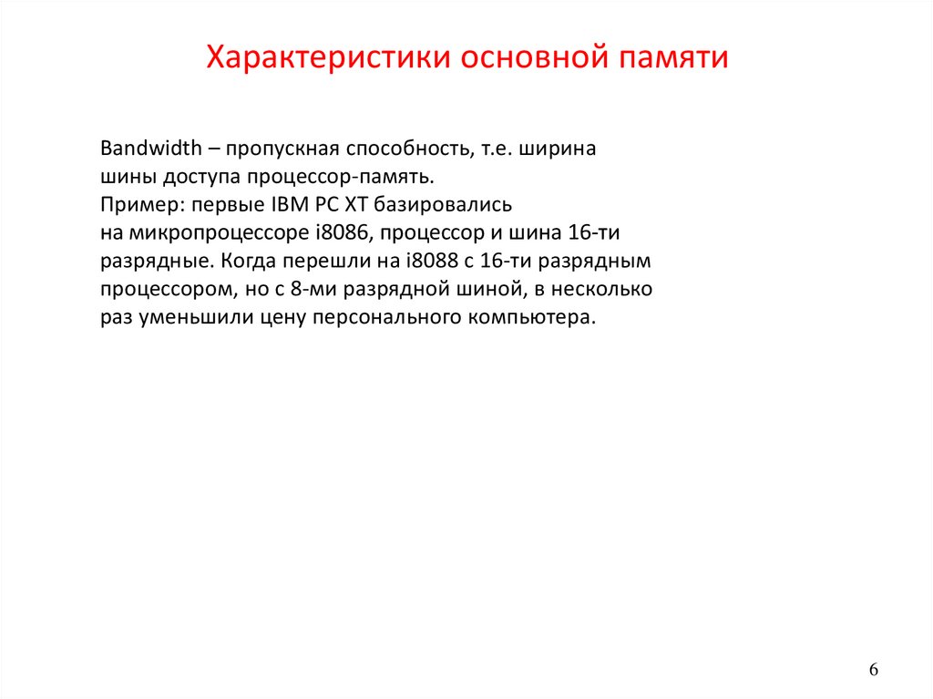 Характеристики основной памятиBandwidth – пропускная способность, т.е. ширина