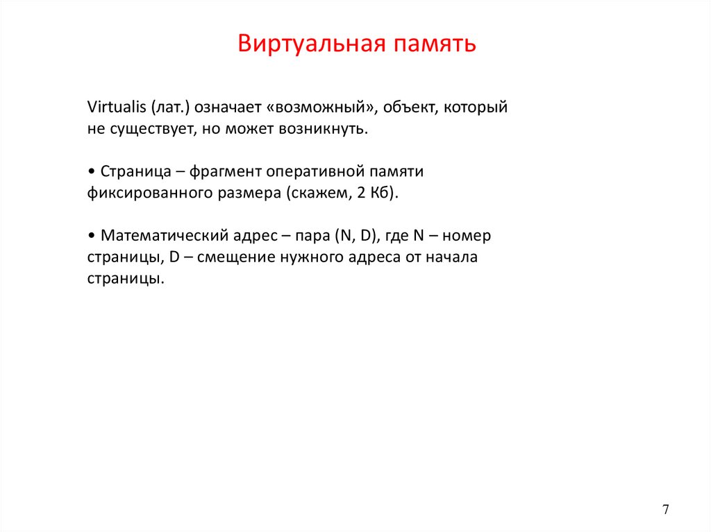 Виртуальная памятьVirtualis (лат.) означает «возможный», объект, который