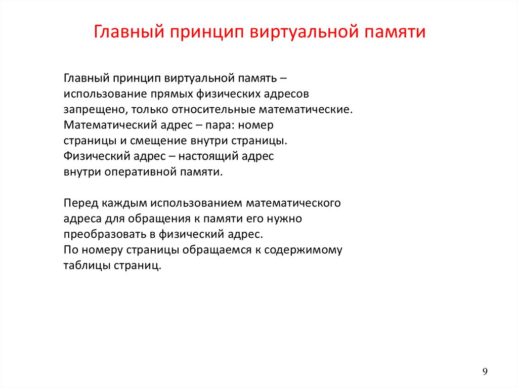 Главный принцип виртуальной памятиГлавный принцип виртуальной память –