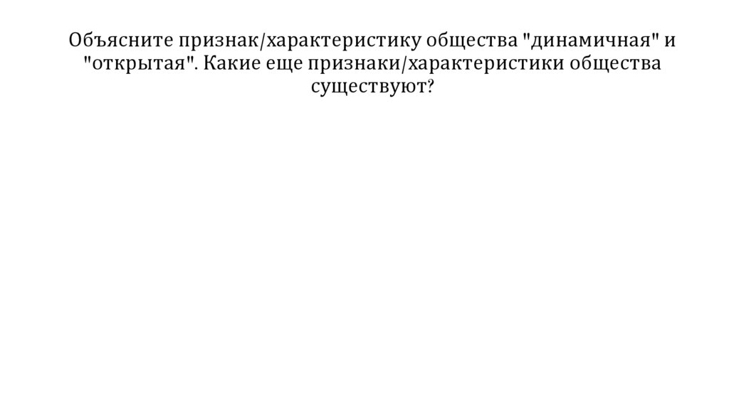 Объясните признак/характеристику общества "динамичная" и"открытая". Какие еще признаки/характеристики общества