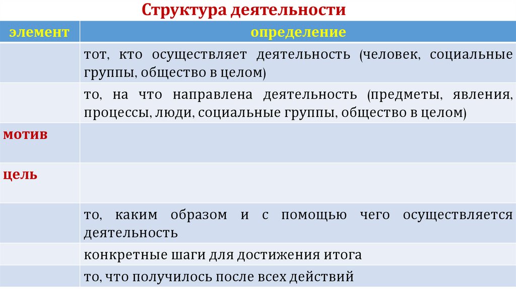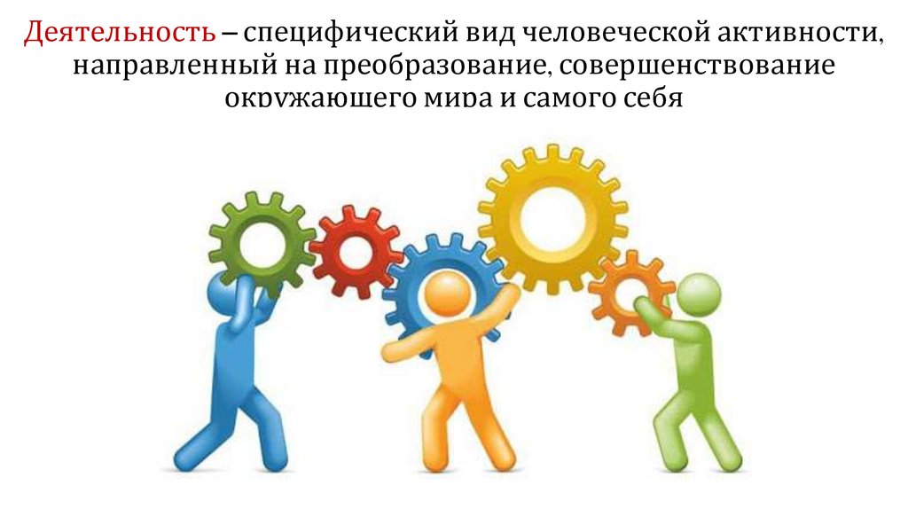 Деятельность – специфический вид человеческой активности,направленный на преобразование, совершенствование
