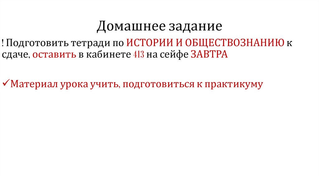 Домашнее задание! Подготовить тетради по ИСТОРИИ И ОБЩЕСТВОЗНАНИЮ к