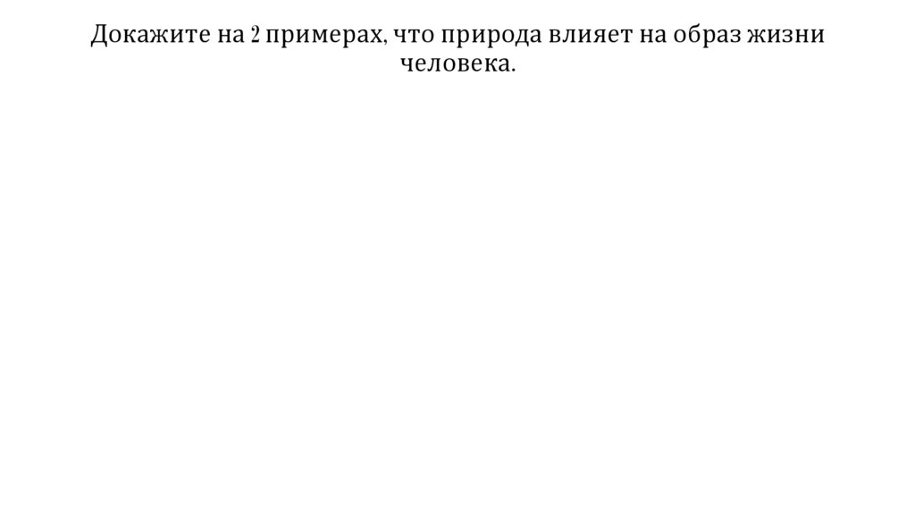 Докажите на 2 примерах, что природа влияет на образ жизничеловека.