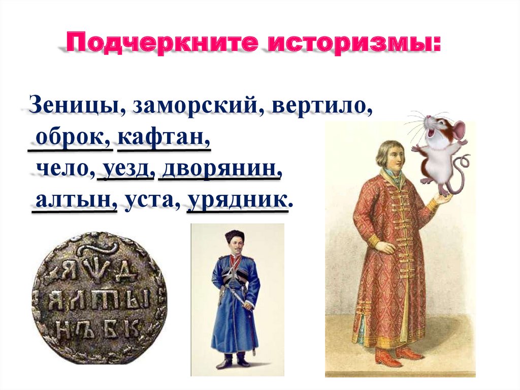 Подчеркните историзмы:Зеницы, заморский, вертило,