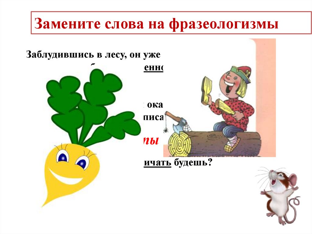 Замените слова на фразеологизмыЗаблудившись в лесу, он уже не искал пути домой,