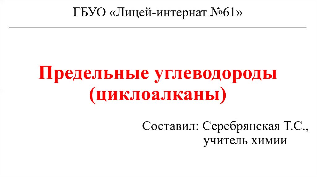 Циклоалканы. Предельные углеводороды