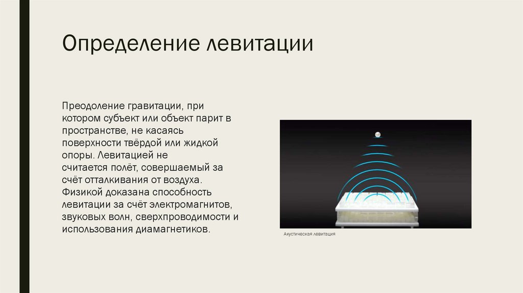 Левитация. Электромагнитная и акустическая левитация. Сверхпроводимость