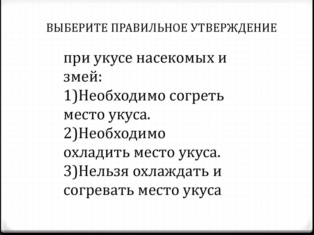 ВЫБЕРИТЕ ПРАВИЛЬНОЕ УТВЕРЖДЕНИЕпри укусе насекомых и