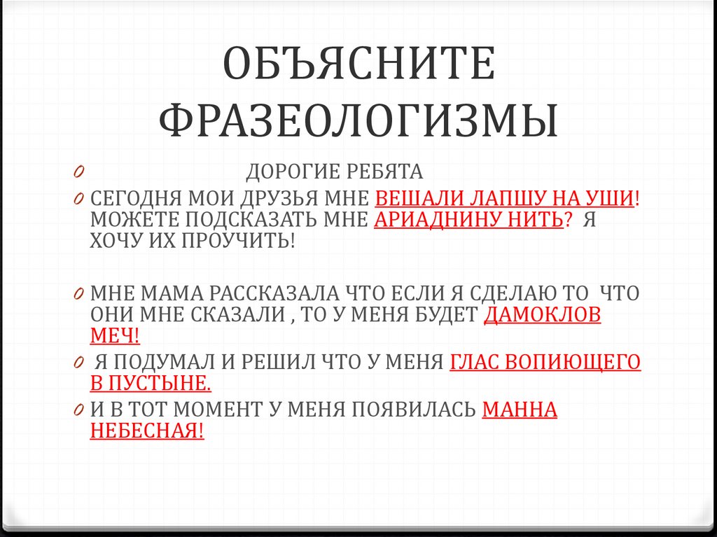 ОБЪЯСНИТЕФРАЗЕОЛОГИЗМЫ