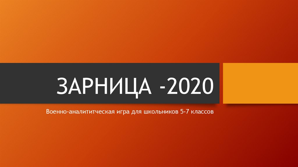 ЗАРНИЦА -2020Военно-аналититческая игра для школьников 5-7 классов