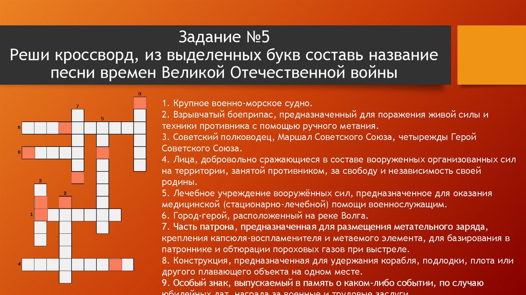 Задание №5Реши кроссворд, из выделенных букв составь название