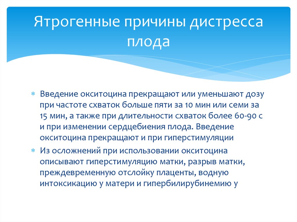 окситоцина составляет 10 милиединиц на/мл). Вводят, начиная с 6-8 капель в мин и