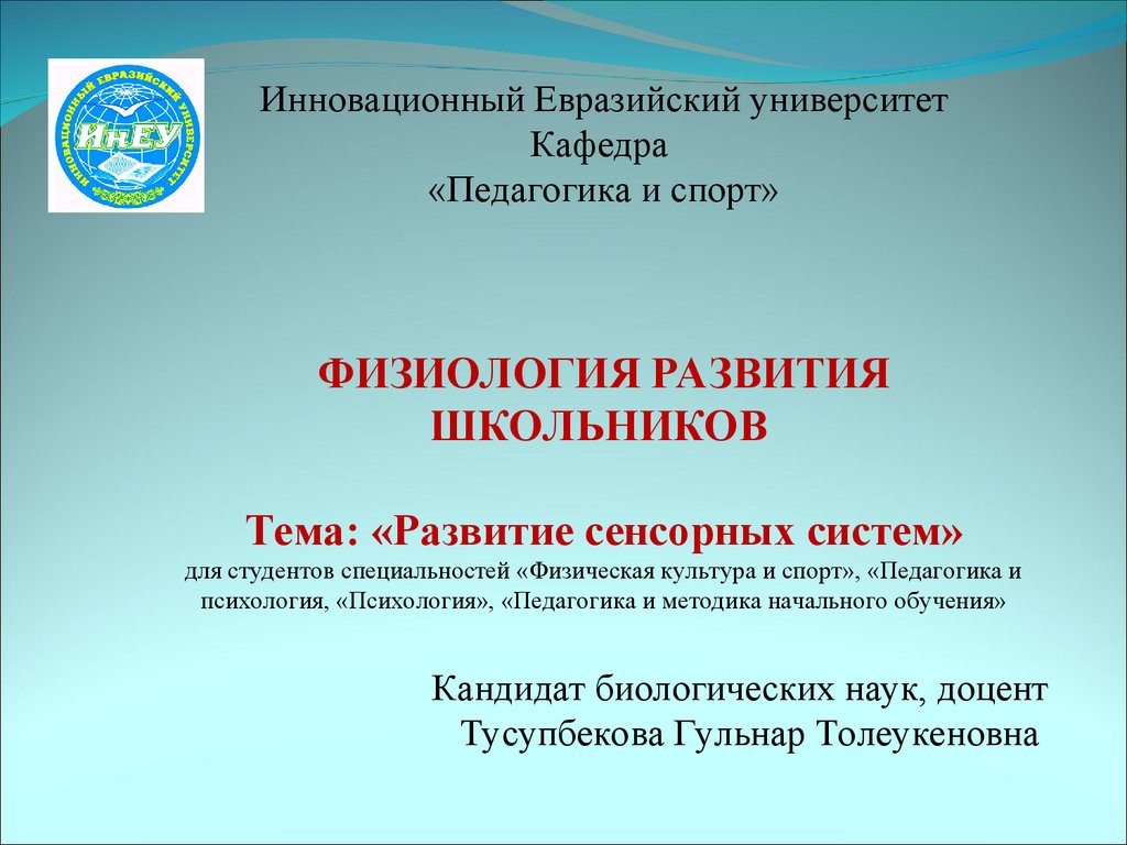 ФИЗИОЛОГИЯ РАЗВИТИЯ