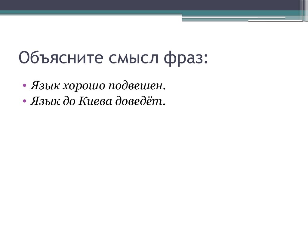 Объясните смысл фраз:• Язык хорошо подвешен.