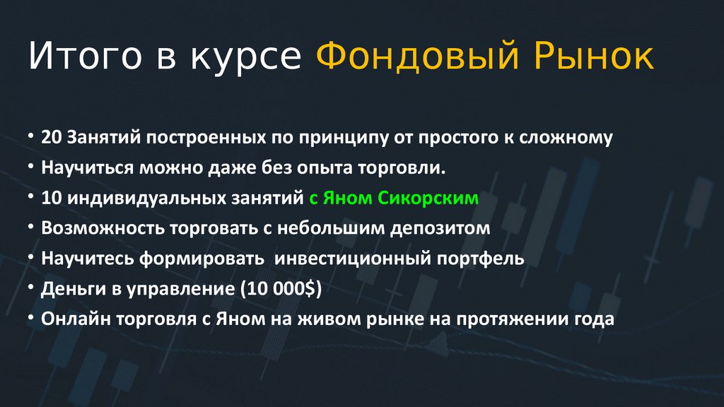 Итого в курсе Фондовый Рынок• 20 Занятий построенных по принципу от простого к сложному