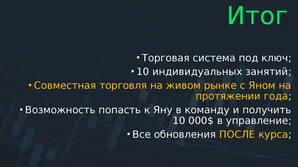 • Онлайн торговля с Яном на живом рынке на протяжении года