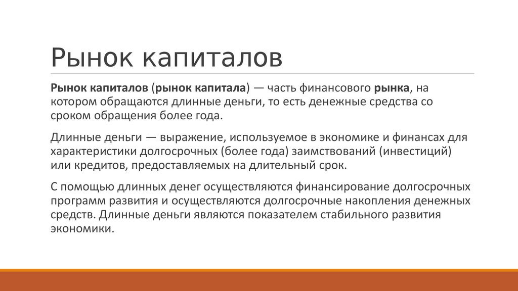 котором обращаются длинные деньги, то есть денежные средства со
