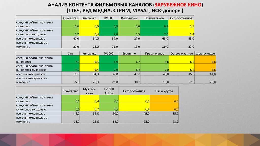 АНАЛИЗ КОНТЕНТА ФИЛЬМОВЫХ КАНАЛОВ (ЗАРУБЕЖНОЕ КИНО)(1ТВЧ, РЕД МЕДИА, СТРИМ, VIASAT, НСК-доноры)