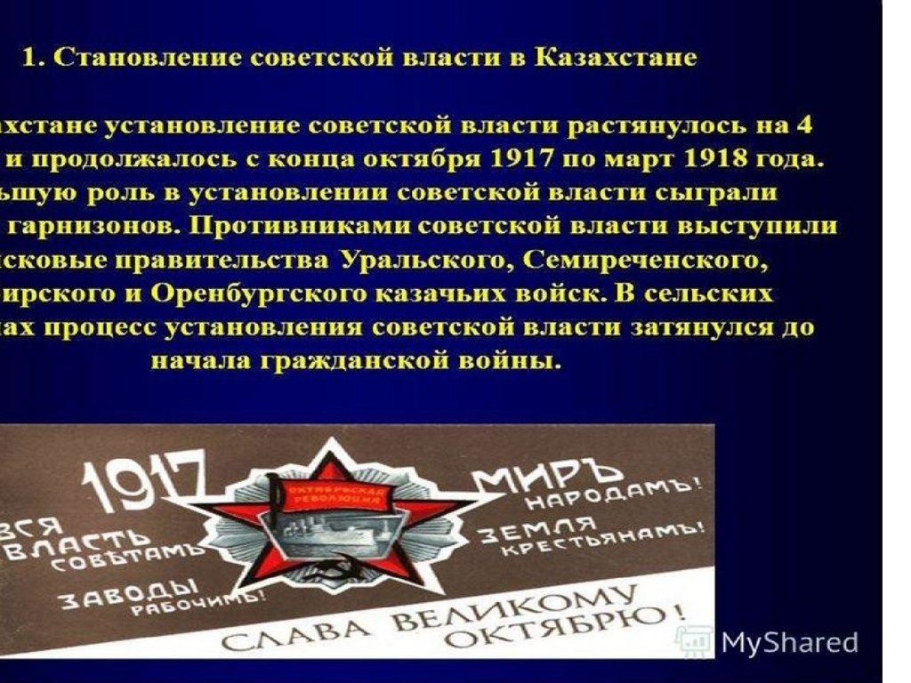 Установление Советской власти в Казахстане. 9 класс