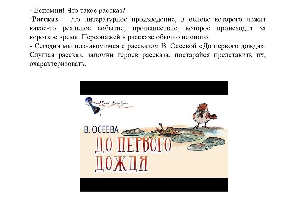 Пересказ рассказа «До первого дождя». Валентина Александровна Осеева