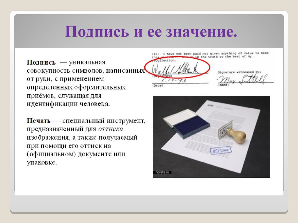 Подпись и ее значение.6. Электронная цифровая подпись.