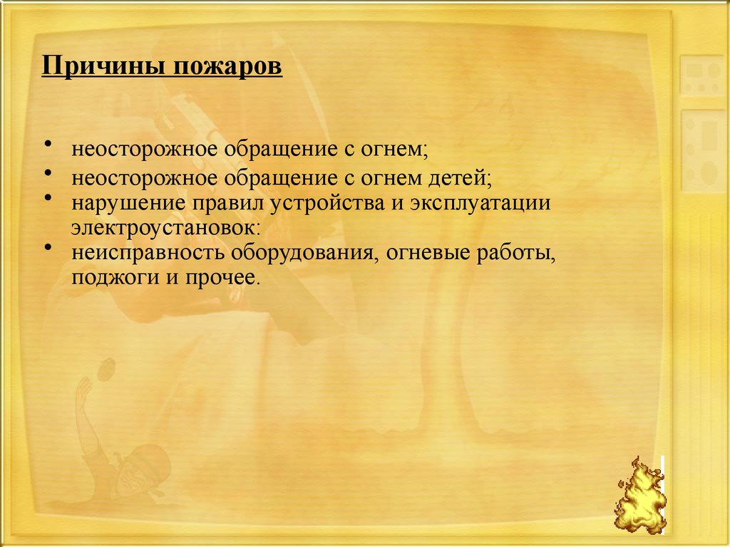 Причины пожаров• неосторожное обращение с огнем;