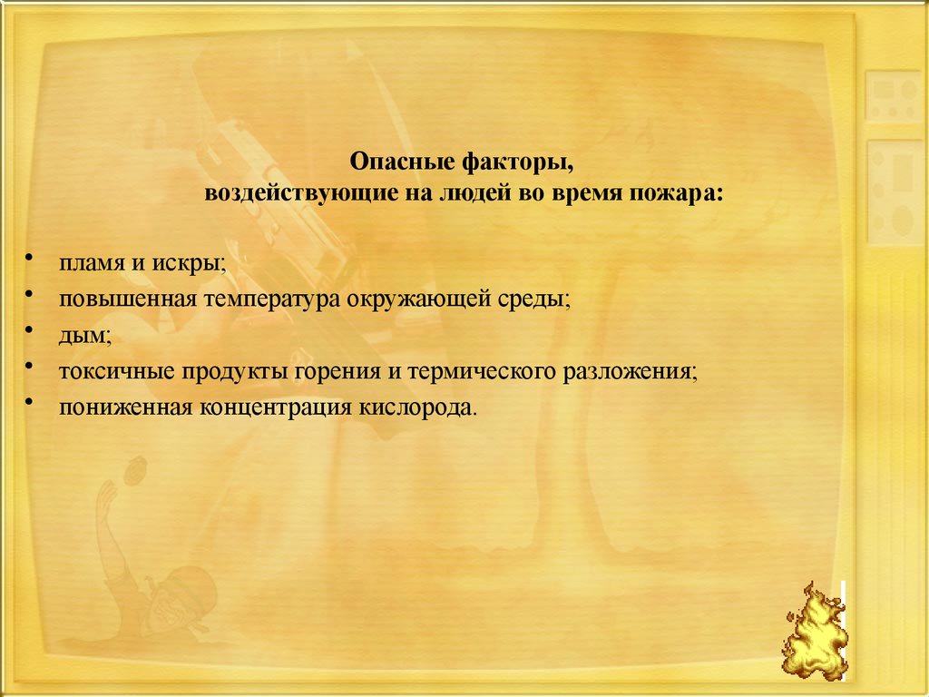 Опасные факторы,воздействующие на людей во время пожара: