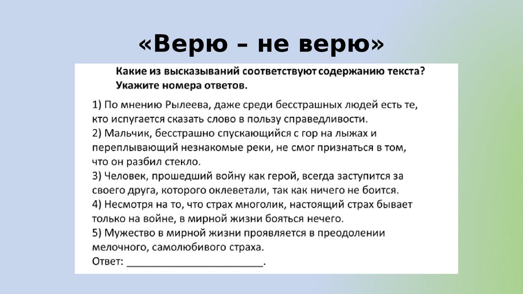 • «игровой» подход к смыслу: «Верю – не верю», «Хорошо –