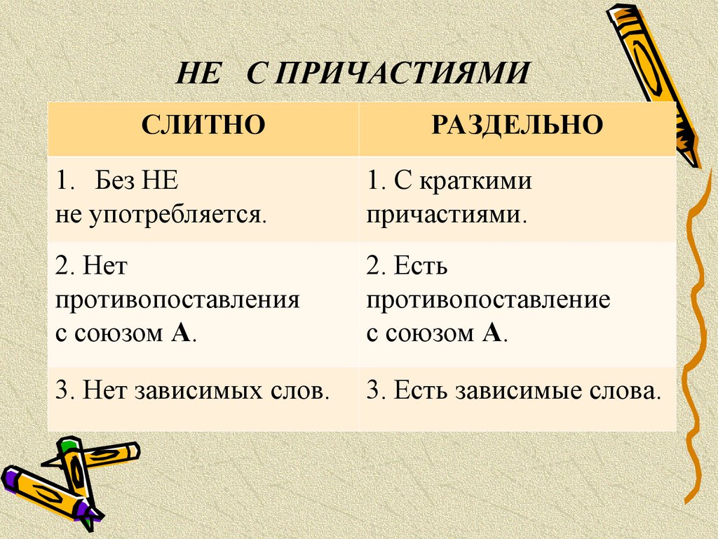 НЕ С ПРИЧАСТИЯМИСЛИТНО