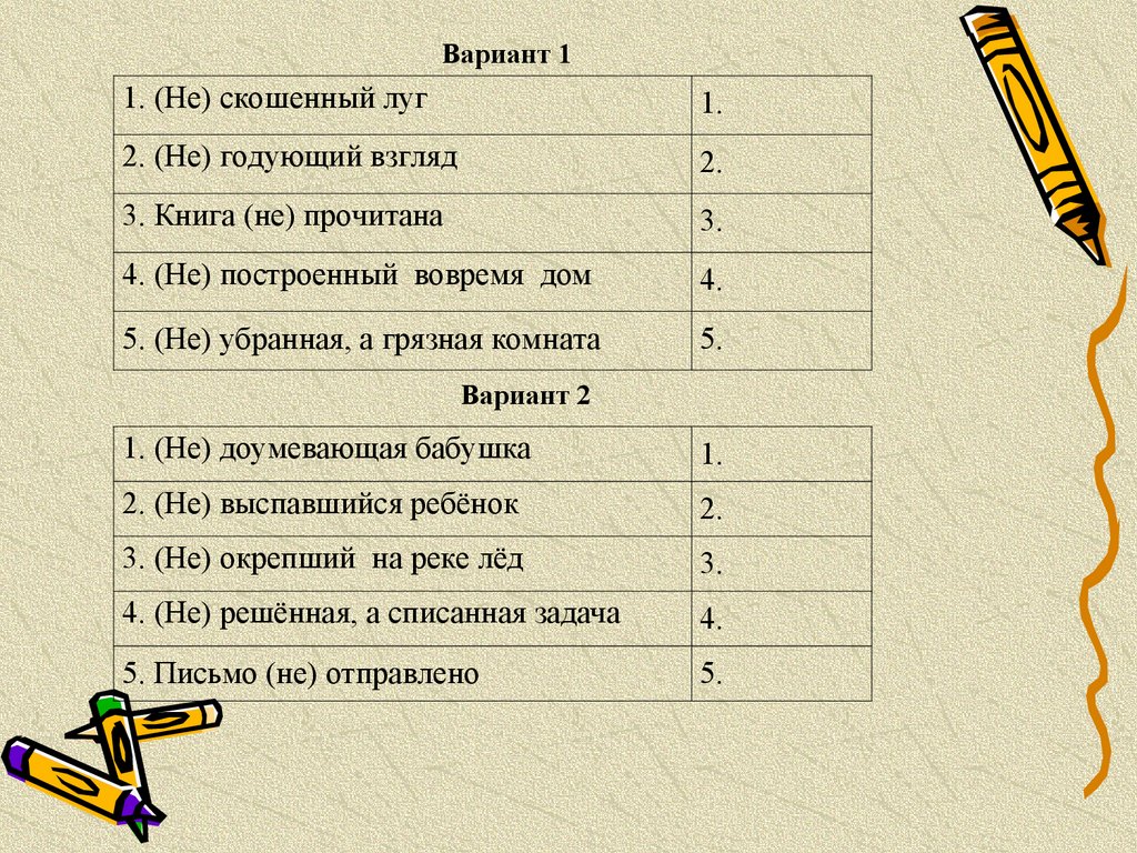 1. (Не) прочитал2. (Не) длинный, а короткий