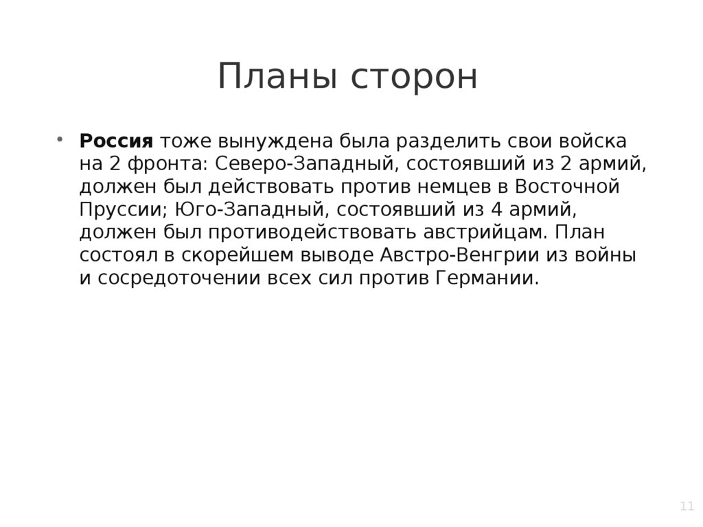 Планы сторонРоссия тоже вынуждена была разделить свои войска