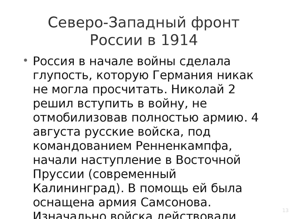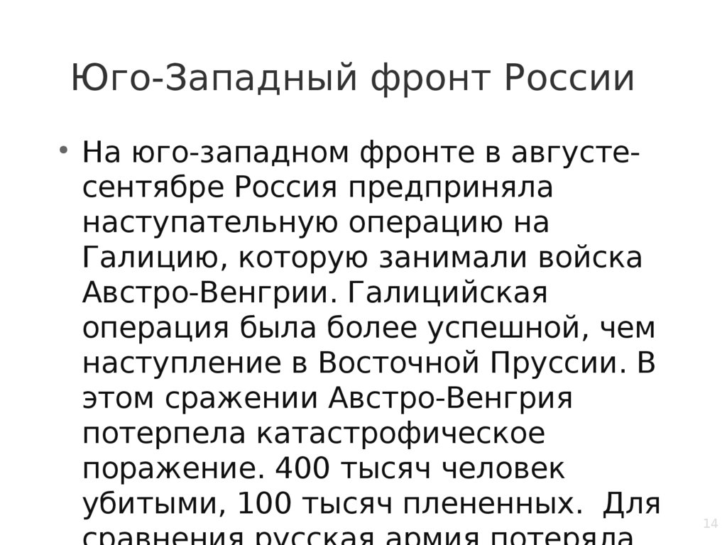 Юго-Западный фронт РоссииНа юго-западном фронте в августесентябре Россия предприняла