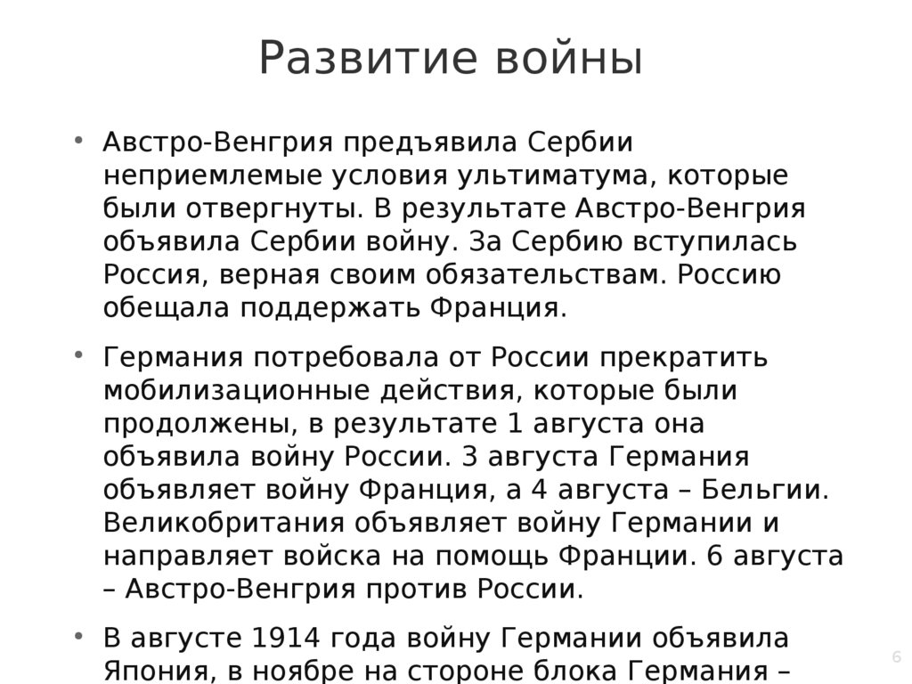Развитие войныАвстро-Венгрия предъявила Сербии