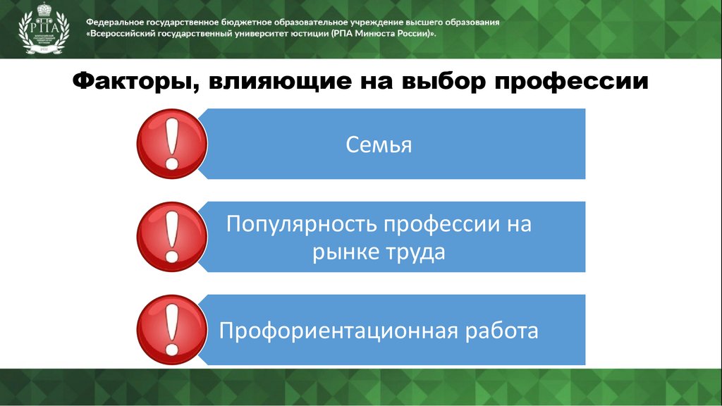 Факторы, влияющие на выбор профессииСемья