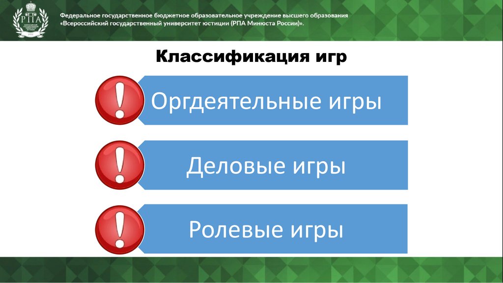 Классификация игрОргдеятельные игры