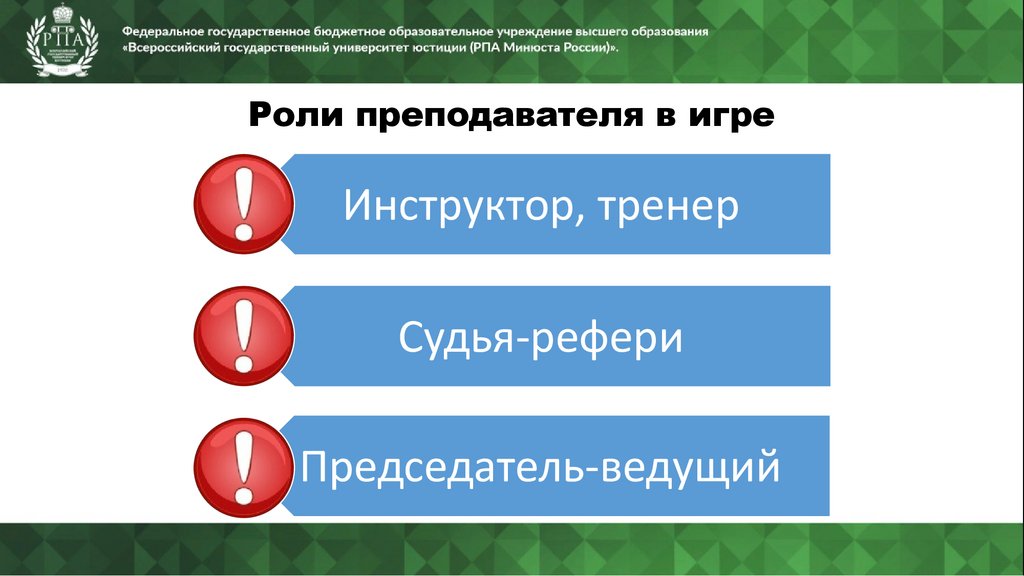 Роли преподавателя в игреИнструктор, тренер