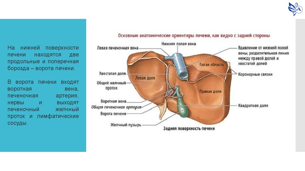 На нижней поверхностипечени находятся две