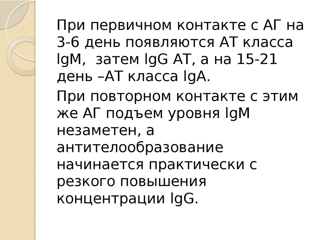 При первичном контакте с АГ на3-6 день появляются АТ класса