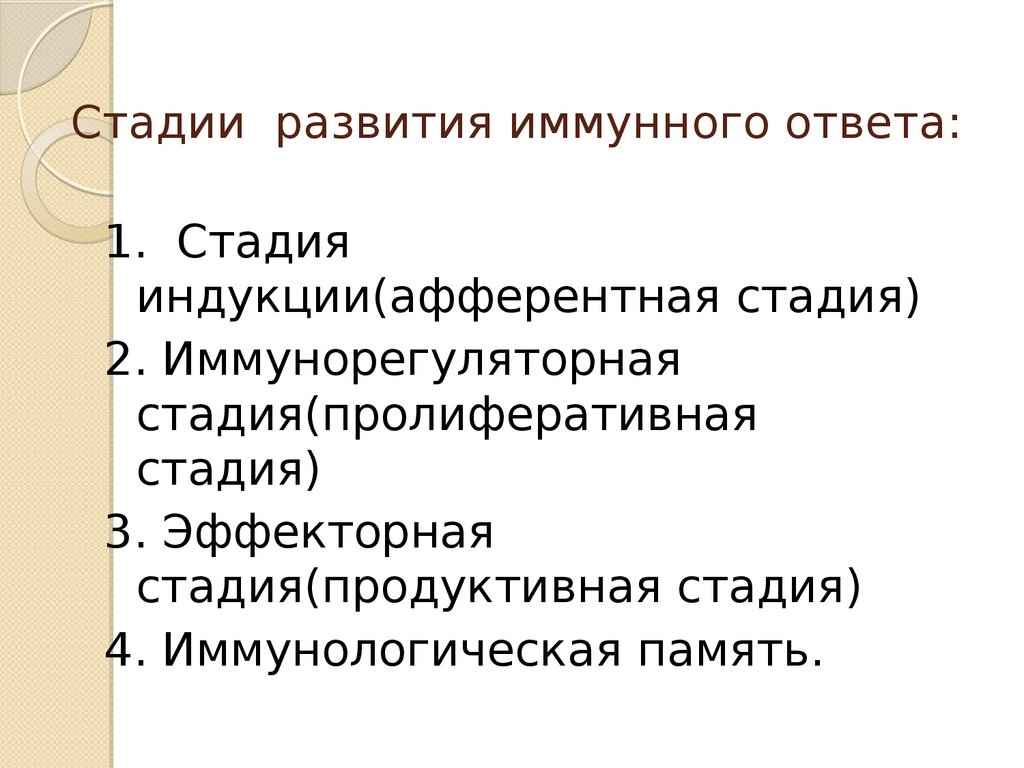 Стадии развития иммунного ответа:1. Стадия