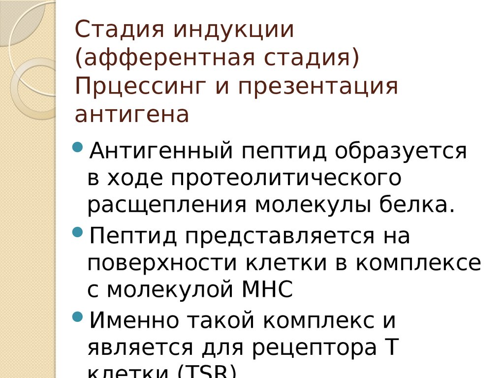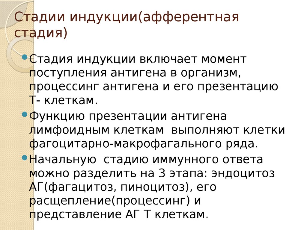 Стадии индукции(афферентнаястадия)