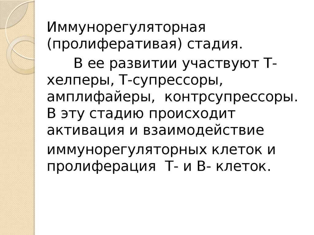 Иммунорегуляторная(пролиферативая) стадия.