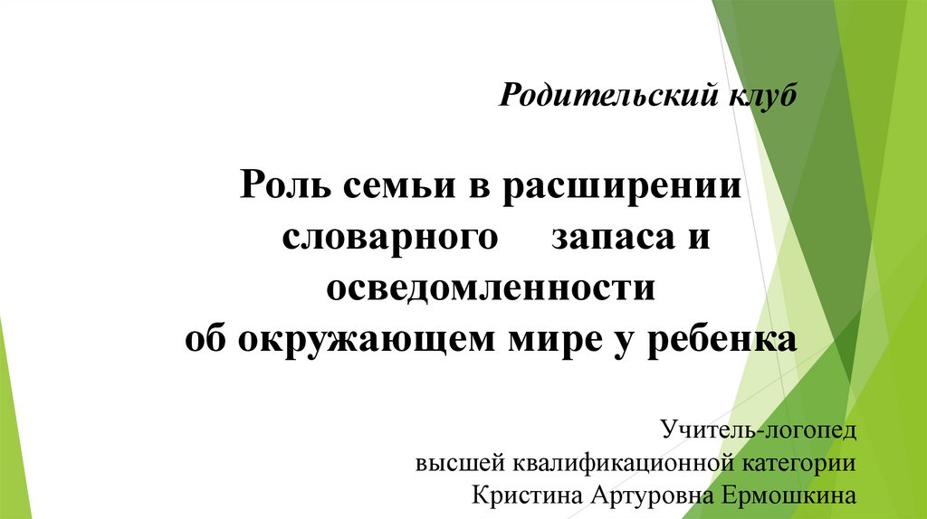 Родительский клубРоль семьи в расширении