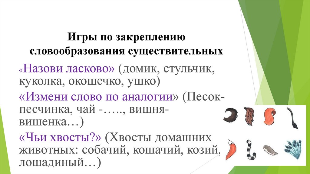 Игры по закреплениюсловообразования существительных