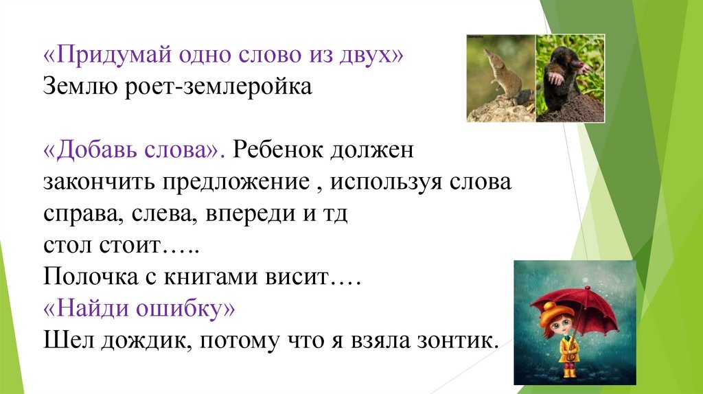 «Придумай одно слово из двух»Землю роет-землеройка