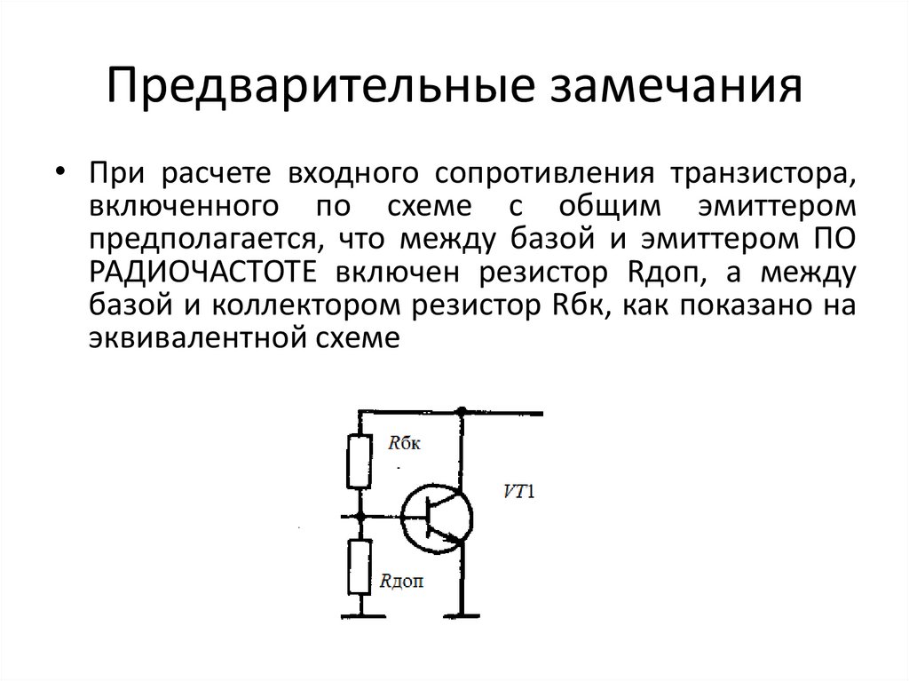 Предварительные замечания• При расчете входного сопротивления транзистора,