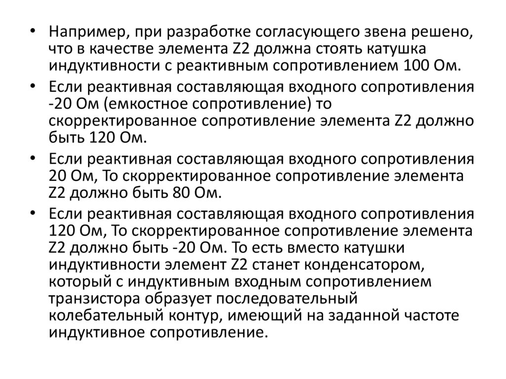 • Например, при разработке согласующего звена решено,что в качестве элемента Z2 должна стоять катушка