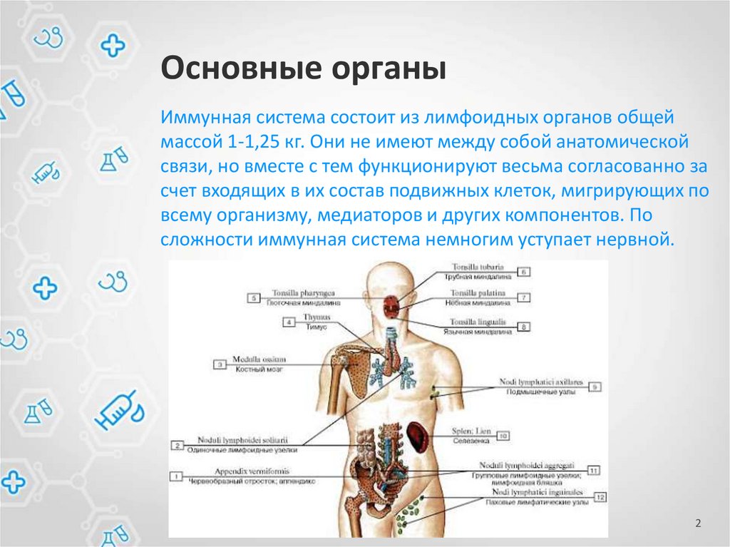 Основные органыИммунная система состоит из лимфоидных органов общей